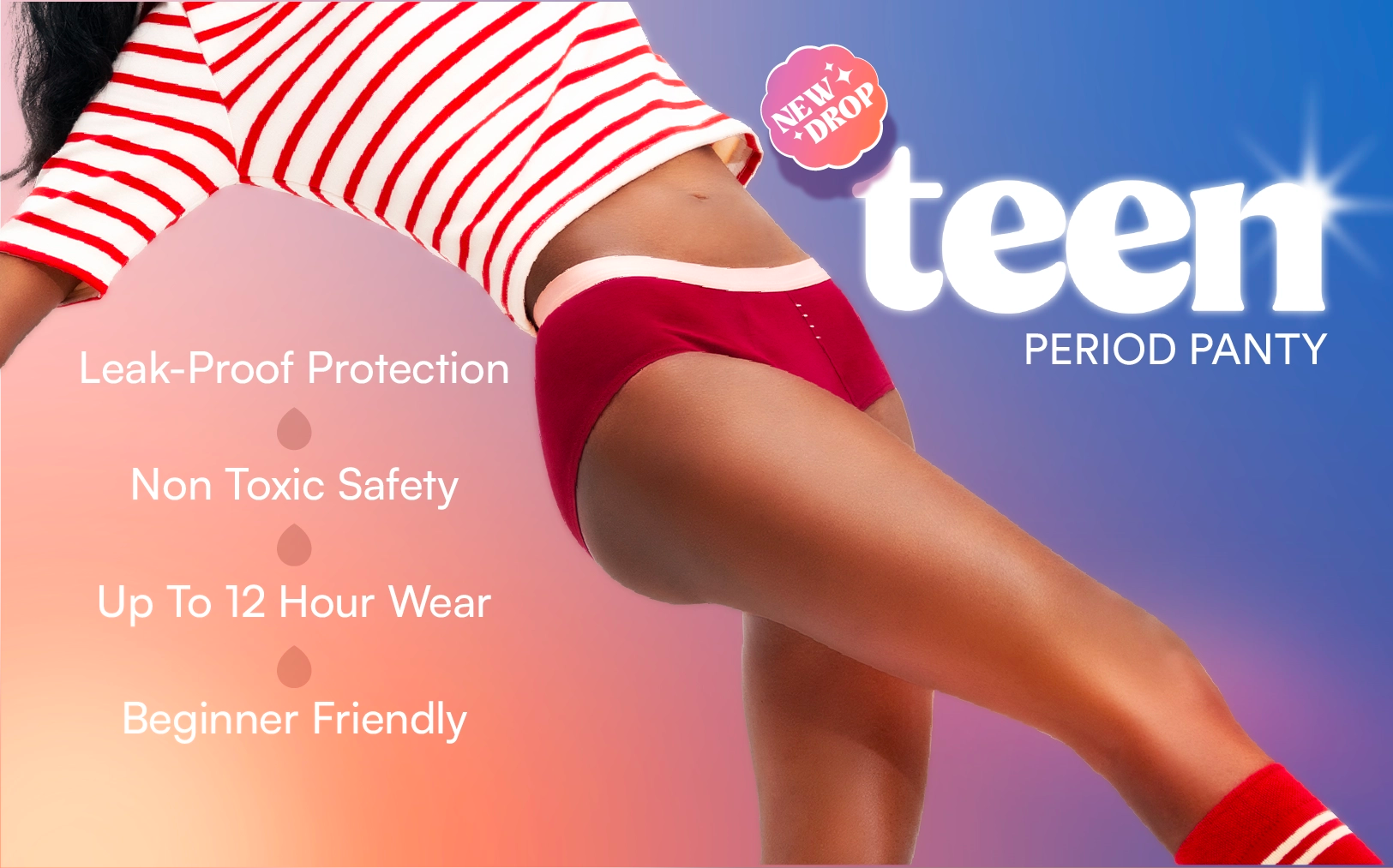 Yes. The four-way stretch fabric in our period underwear for teens adapts as your body changes through puberty. It fits snug yet flexible, making it the best period panties for teens who want comfort that lasts.